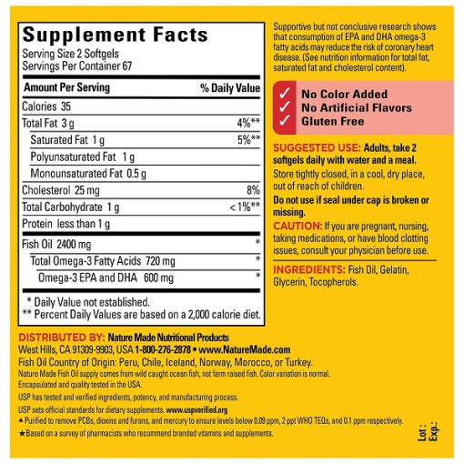 - نام محصول: روغن ماهی نیچرمید 2400 میلیگرم (Nature Made Fish Oil 2400 mg)