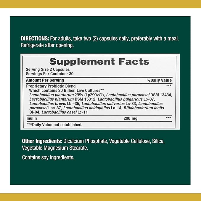 20 میلیارد واحد تشکیل کلنی در هر کپسول: 20 میلیارد پروبیوتیک زنده در هر کپسول دریافت کنید که از سیستم گوارش شما پشتیبانی میکند (1)